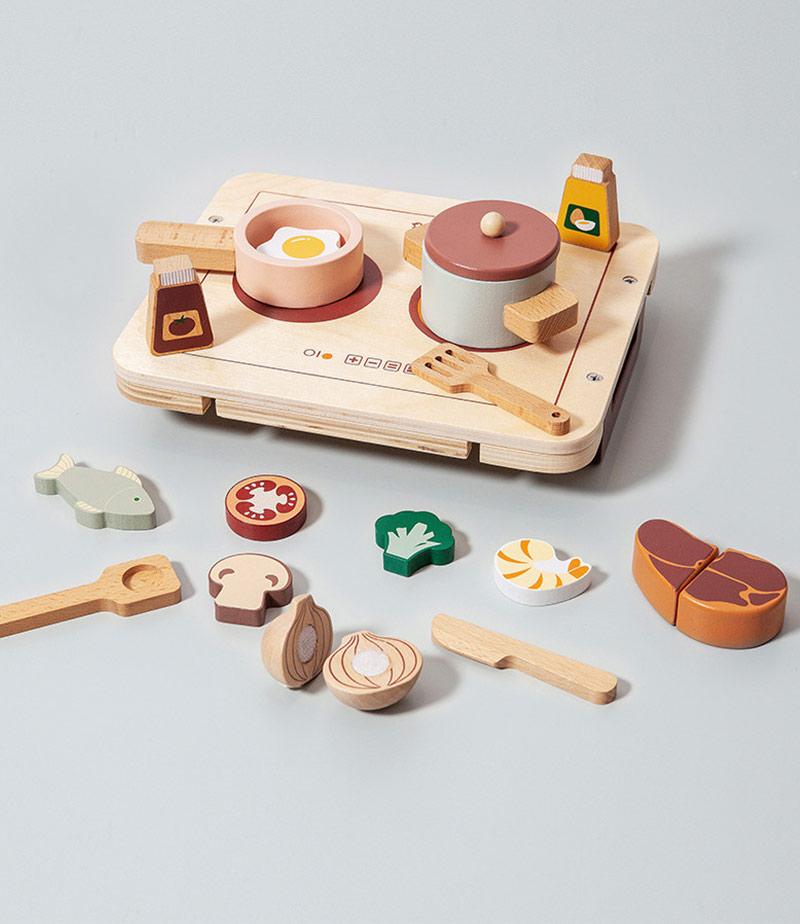 Petit Monkey Ξύλινο Σετ Φαγητού: Με το ξύλινο σετ φαγητού της Petit Monkey μπορείτε να μιλήσετε στο παιδί για τη σημασία της υγιεινής διατροφής και ταυτόχρονα να του δώσετε το ερέθισμα να δημιουργήσει τα δικά του πιάτα, τονώνοντας τη φαντασία του. Αν γυρίσετε την κουζίνα, μπορείτε να τη χρησιμοποιήσετε και ως δίσκο. Ανακατέψτε όλα τα υλικά για ένα υπέροχο δείπνο! Ηλικία: 3+ ετών.