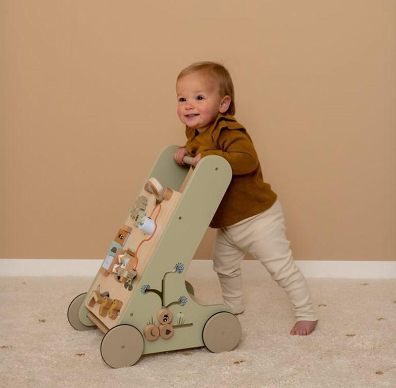 Little Dutch Καρότσι - Περπατούρα Little Goose: Αυτή η ξύλινη περπατούρα προσφέρει 8 διαφορετικές δραστηριότητες εξερεύνησης και εκμάθησης, ώστε να υποστηρίξει την ανάπτυξη των κινητικών δεξιοτήτων του παιδιού σας. Χάρη στον ισορροπημένο σχεδιασμό της, είναι κατάλληλη για να μάθει το παιδί πώς να περπατάει. Οι ελαστικοί τροχοί του δεν θα κάνουν σημάδια στο πάτωμά σας και είναι ασφαλείς για χρήση στο εσωτερικό. Ηλικία: 12+ μηνών.