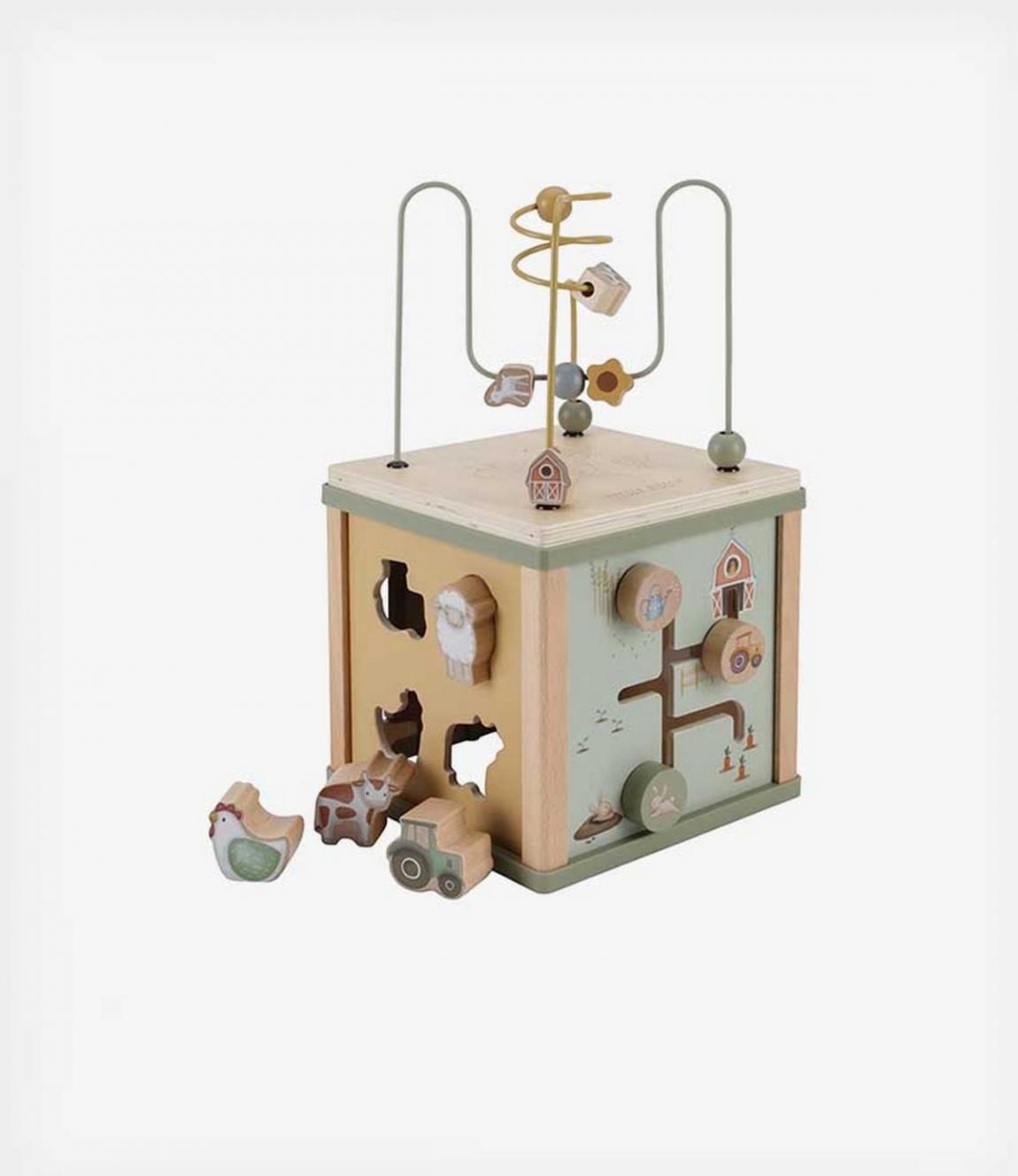 #5 Little Dutch Ξύλινος Κύβος Δραστηριοτήτων Little Farm FSC: Ταξινομητής σχημάτων, περιστρεφόμενα γρανάζια, παζλ και μία διασκεδαστική σπείρα από χάντρες στην κορυφή! Αυτός ο ξύλινος κύβος προσφέρει μια σειρά από διαφορετικές εκπαιδευτικές δραστηριότητες και «αιχμαλωτίζει» την περιέργεια των παιδιών, δίνοντάς τους τη δυνατότητα να έρθουν αντιμέτωπα με πολλές προκλήσεις, να αναπτύξουν τις λεπτές κινητικές τους δεξιότητες, καθώς και να χρησιμοποιήσουν τη δημιουργικότητά τους. Κατάλληλο για ηλικίες από 18 μηνών και άνω.