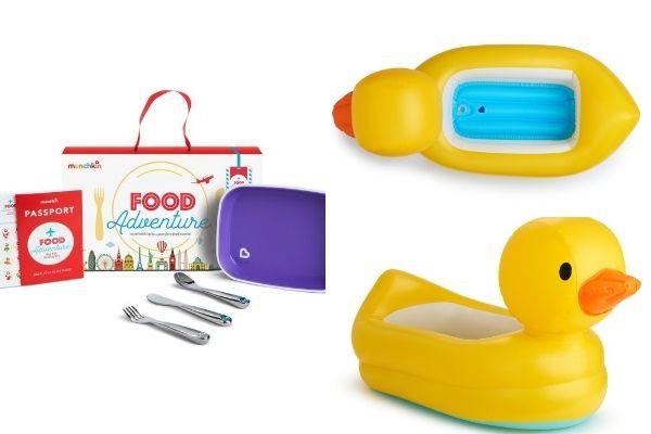 Σετ φαγητού με θέμα τα ταξίδια Food Adventure SplashTM Big Kid Dining Set & Φουσκωτή μπανιέρα Safety Bath Duck με τεχνολογία White Hot® | Munchkin