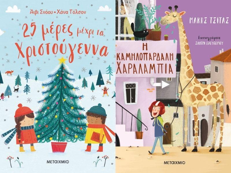 «25 μέρες μέχρι τα Χριστούγεννα» του Άιβι Σνόου, για παιδιά από 4 ετών & «Η καμηλοπάρδαλη Χαραλαμπία» του Μάκη Τσίτα, για παιδιά από 4 ετών | Εκδόσεις ΜΕΤΑΙΧΜΙΟ | www.metaixmio.gr