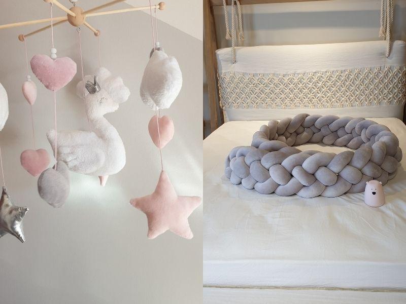 Xειροποίητο μόμπιλε κούνιας Κύκνος & Βρεφική προστατευτική πάντα, χειροποίητη, από μαλακό, βελούδινο ύφασμα, 100% βαμβακερό, τετραπλής πλέξης | The Owl | www.theowl.gr