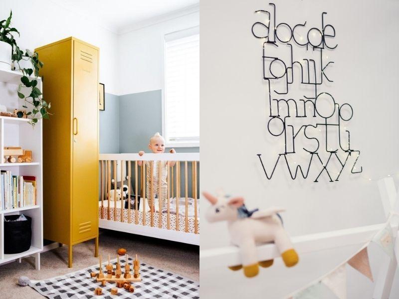 Ντουλάπι Skinny in Mustard & ABC μεταλλικό φωτιστικό τοίχου | Up Up and Away | www.upupandaway.gr