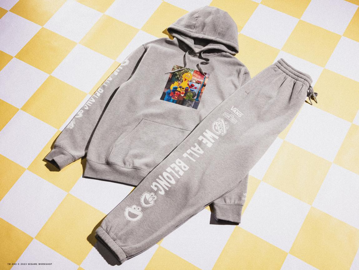 Η συλλογή ένδυσης περιλαμβάνει ένα σετ από fleece φούτερ με κεντρική φωτογραφία τους πρωταγωνιστές του Sesame Street, ενώ τόσο στην κουκούλα όσο και στο παντελόνι της φόρμας αναγράφεται το "We AllBelong".
