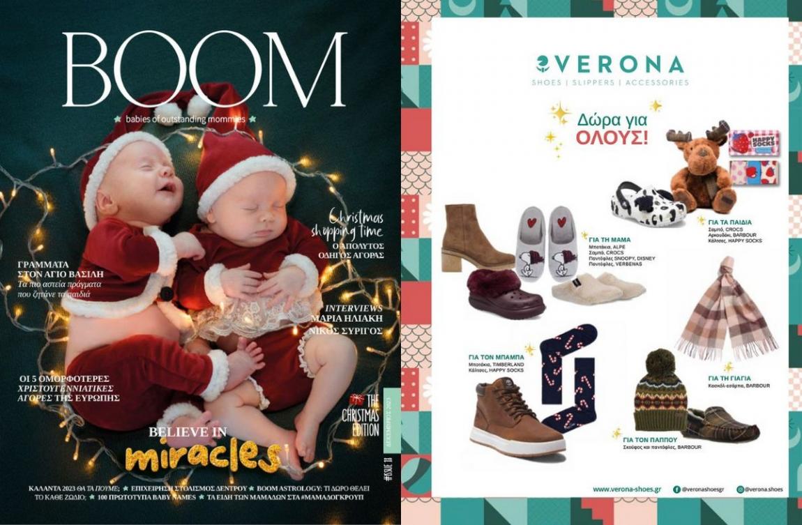 Δεν θα ήταν τέλειο να μπορούσαμε να βρούμε υπέροχα και χρήσιμα δώρα για όλους σε ένα μόνο κατάστημα; Ε λοιπόν στη Verona μπορούμε! Μια τεράστια ποικιλία από stylish παπούτσια, μαλακές παντόφλες και τα πιο ποιοτικά χειμερινά αξεσουάρ, μας περιμένουν για να διαλέξουμε το ιδανικό δώρο για όλους, μικρούς και μεγάλους! Να οι επιλογές του BOOM...