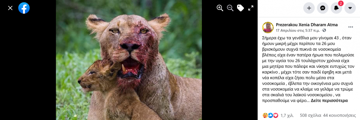 «Σήμερα έχω τα γενέθλια μου γίνομαι 43. Όταν ήμουν μικρή, μέχρι περίπου τα 26 μου, βρισκόμουν συχνά πυκνά σε νοσοκομεία... Βλέπεις είχα έναν πατέρα ήρωα, που πολεμούσε με την υγεία του 26 τουλάχιστον χρόνια. Είχα μια μητέρα που πάλεψε και νίκησε ευτυχώς τον καρκίνο, μέχρι τότε σαν παιδί έφηβη και μετά νέα κοπέλα είχα ζήσει πολύ μέσα στα νοσοκομεία. Έβλεπα την οικογένεια μου συχνά στα νοσοκομεία να κλαίμε να γελάμε να τρώμε στα σκαλιά του λαϊκού νοσοκομείου, να προσπαθούμε να φέρουμε άγιο φως από το παρεκκλήσι στο δωμάτιο …