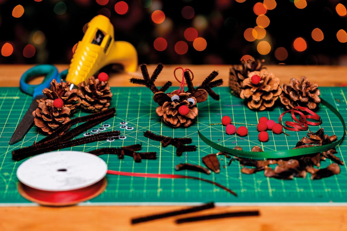 Κι όμως, με ένα απλό κουκουνάρι μπορούμε να φτιάξουμε ένα ταρανδάκι! Τι θα χρειαστούμε; Κουκουνάρια, πλαστικά ματάκια, χρωματιστές μαλακές μπαλίτσες (pompon), κλαδάκια, χρωματιστά χαρτάκια, κόλλα. Πώς το φτιάχνουμε; Βάζουμε στο κουκουνάρι μάτια, αυτιά, μυτούλα, κέρατα και ποδαράκια. Οι τάρανδοι μπορούν να έχουν κόκκινη μύτη ή μύτη στο χρώμα του χριστουγεννιάτικου στολισμού μας! Με τα ίδια υλικά, μπορείτε να μετατρέψετε το κουκουνάρι σας σε ξωτικό του Άγιου Βασίλη αλλά και σε χριστουγεννιάτικο δέντρο-μινιατούρα!