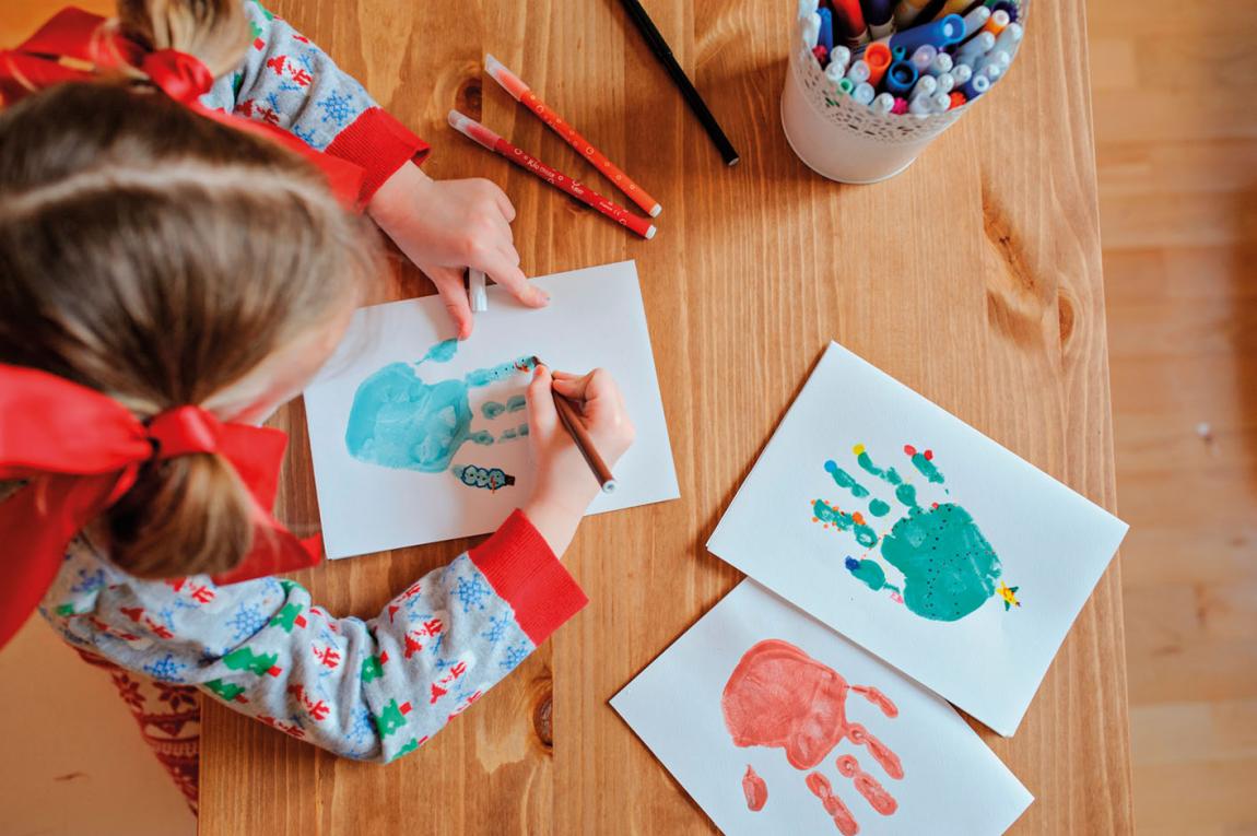 Ώρα να αφήσουμε το αποτύπωμά μας στον χρόνο! Τι θα χρειαστούμε; Καμβάδες διαφόρων μεγεθών, δαχτυλομπογιές, πινέλα και… τα χεράκια/πατουσάκια μας! Πώς θα το φτιάξουμε; Βάζουμε το χρώμα της επιλογής μας στην παλάμη ή την πατουσίτσα και με προσοχή ή με τη βοήθεια ενός ενήλικα την ακουμπάμε πάνω στον καμβά. Στη συνέχεια, αρχίζουμε να «στολίζουμε» το αποτύπωμά μας με επιπλέον χρώμα. Μπορούμε να φτιάξουμε χιονάνθρωπους, δέντρα και ταράνδους. Σε έναν μεγάλο καμβά/πίνακα μπορεί όλη η οικογένεια να αφήσει το αποτύπωμά της και να δημιουργηθεί ένα χριστουγεννιάτικο αναμνηστικό!