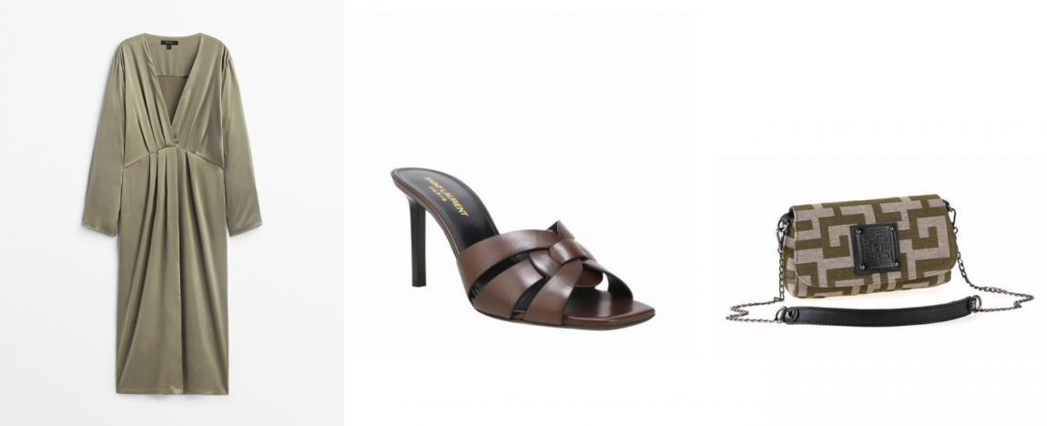 - Μακρύ μεταξωτό φόρεμα με σούρες, Massimo Dutti