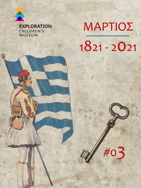 Μήνας Επανάστασης: Φέτος γιορτάζουμε την επέτειο των 200 χρόνων από την Ελληνική Επανάσταση του 1821 και ο μήνας Μάρτιος είναι αφιερωμένος σε αυτό, στο Παιδικό Μουσείο Exploration! Δίνεται στα παιδιά η ευκαιρία να περιηγηθούν διαδικτυακά στο μουσείο, να μεταμορφωθούν σε ερευνητές και να εξερευνήσουν τον τόπο τους. Θα μάθουν τα ιστορικά γεγονότα γύρω από την επανάσταση, θα γνωρίσουν τις μεγάλες προσωπικότητες της εποχής αλλά και τις σημαντικές μάχες που την καθόρισαν, μέσω της μελέτης χαρτών και βιβλίων, πινάκων και ζωγραφιών, λύνοντας όλες τους τις απορίες φυσικά μέσα από το παιχνίδι!