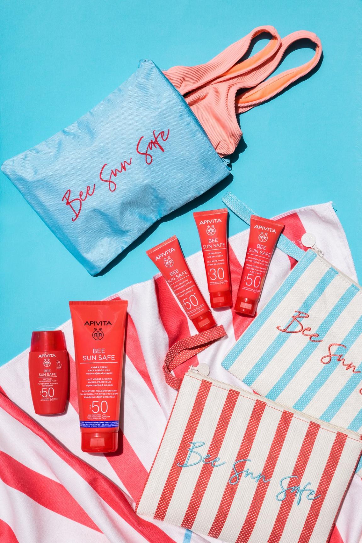 Αντηλιακά για μικρούς και μεγάλους, νεσεσέρ με όλα τα απαραίτητα και τα πιο cute και eco friendly παιχνίδια παραλίας! Ανοίξαμε την τσάντα της Λίνας Κοριζή, super mommy τριών κοριτσιών και Global PR Senior Manager της APIVITA, και βρήκαμε όλα τα must-have προϊόντα από τη σειρά BEE SUN SAFE, που δεν θα λείπουν από καμιά mommy bag φέτος το καλοκαίρι.