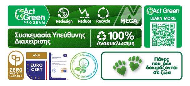 Plus 1: Τα προϊόντα Babylino ακολουθούν υπεύθυνες περιβαλλοντικές πρακτικές. Για την παραγωγή τους χρησιμοποιείται 100% πράσινη ενέργεια από την εταιρεία ΜΕΓΑ, η οποία έχει λάβει τη διεθνή πιστοποίηση Zero Waste to Landfill σε επίπεδο “Gold”, καθώς το 2020 η μονάδα παραγωγής της πέτυχε ποσοστό 99% ανακύκλωσης και ενεργειακής αξιοποίησης. Σε 100% ανακυκλώσιμη συσκευασία.