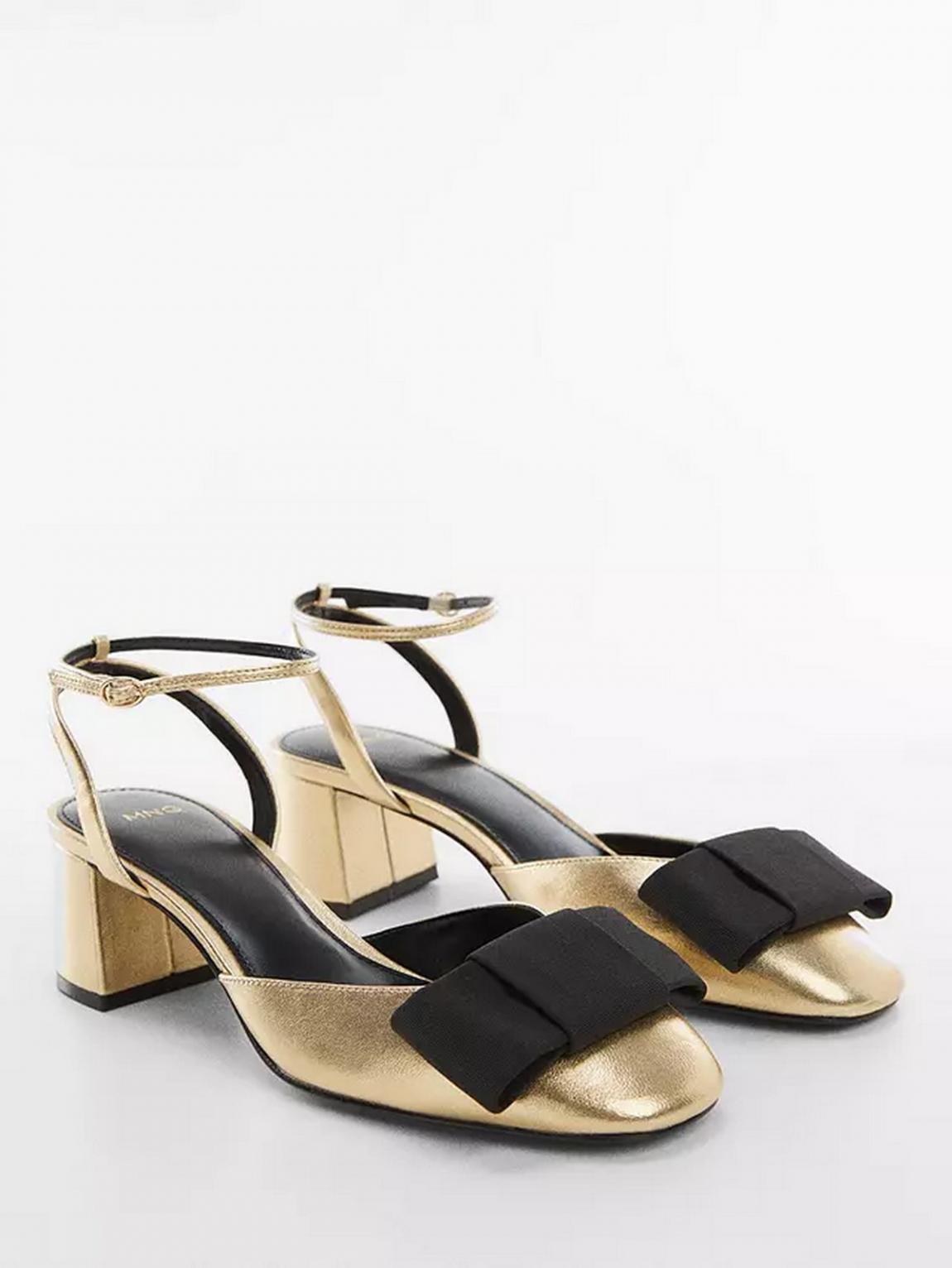 #4 Mango Metallic Shoes With Bow, Gold, John Lewis & Partners