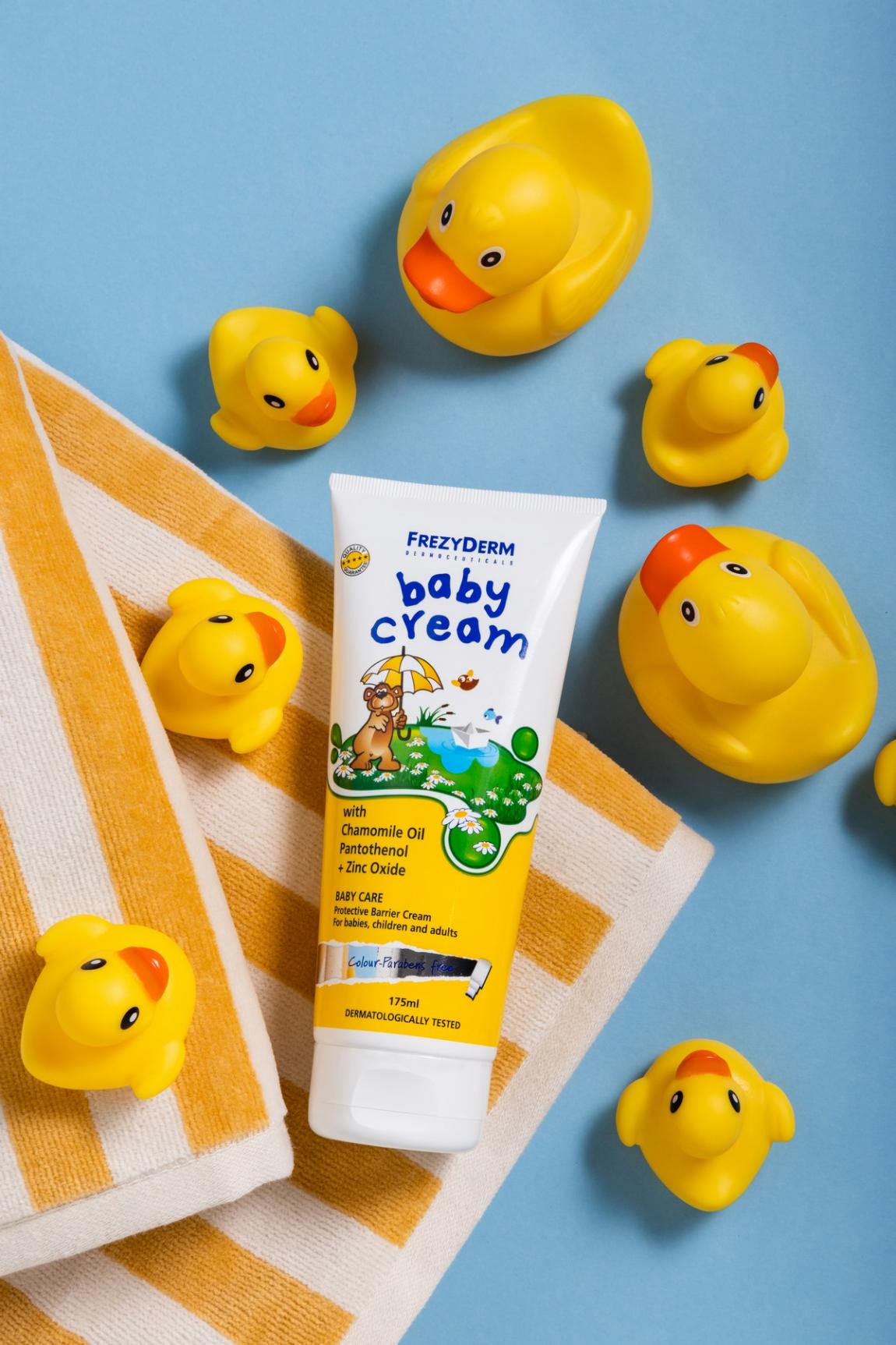 Στο τέλος της πιο γλυκιάς ρουτίνας αλλά και μετά από κάθε αλλαγή πάνας, εφαρμόστε την αδιάβροχη κρέμα Baby Cream της FREZYDERM, που δημιουργεί φραγμό προστασίας χωρίς όμως να φράσσει τους πόρους του δέρματος. Χάρη στη λεπτόρρευστη υφή της, απλώνεται και αφαιρείται χωρίς τριβή, ώστε να μην προκαλούνται τραυματισμοί στο ευαίσθητο βρεφικό δερματάκι.