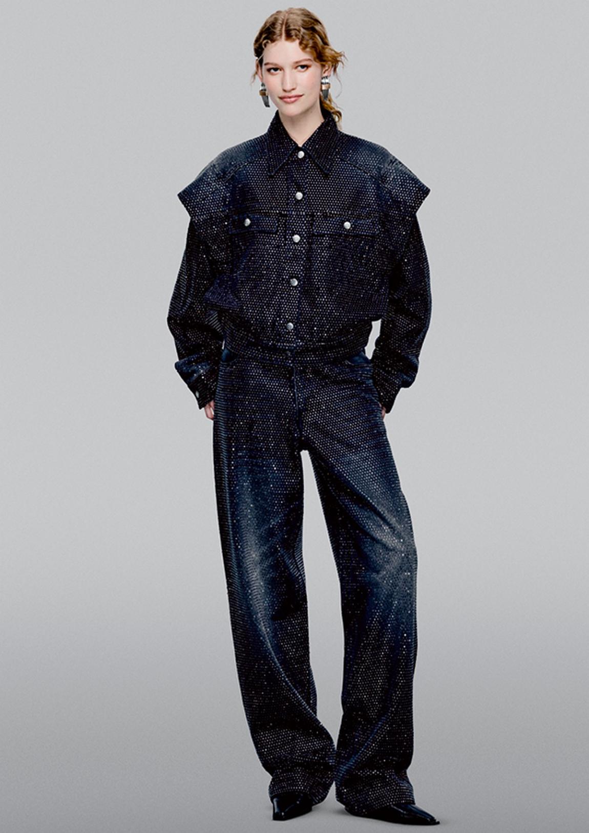 Για βραδινές εμφανίσεις, ένα χαμηλό τζιν παντελόνι διακοσμημένο με στρας σε απόχρωση σαμπάνιας, σετ με σακάκι, λάμπει μαζί με ένα μαύρο μίνι φόρεμα σε γραμμή Α με λευκό έντονο γιακά. Τα αξεσουάρ προσθέτουν μια πινελιά λάμψης, όπως οι κομψές μπότες από δέρμα νάπα και κοσμήματα. Ομοίως και η τσάντα clutch με όγκο, ένα από τα πολλά αγαπημένα κομμάτια που επιστρέφουν από τα αρχεία της H&M Studio, αυτήν τη φορά ανακατασκευασμένη για το φθινόπωρο σε απαλό μαύρο δέρμα. Η συλλογή είναι διαχρονική, με υψηλής ποιότητας υφάσματα, τα περισσότερα από τα οποία κατασκευασμένα από υλικά πιο βιώσιμης προέλευσης, όπως ανακυκλωμένος πολυεστέρας και Tencel.