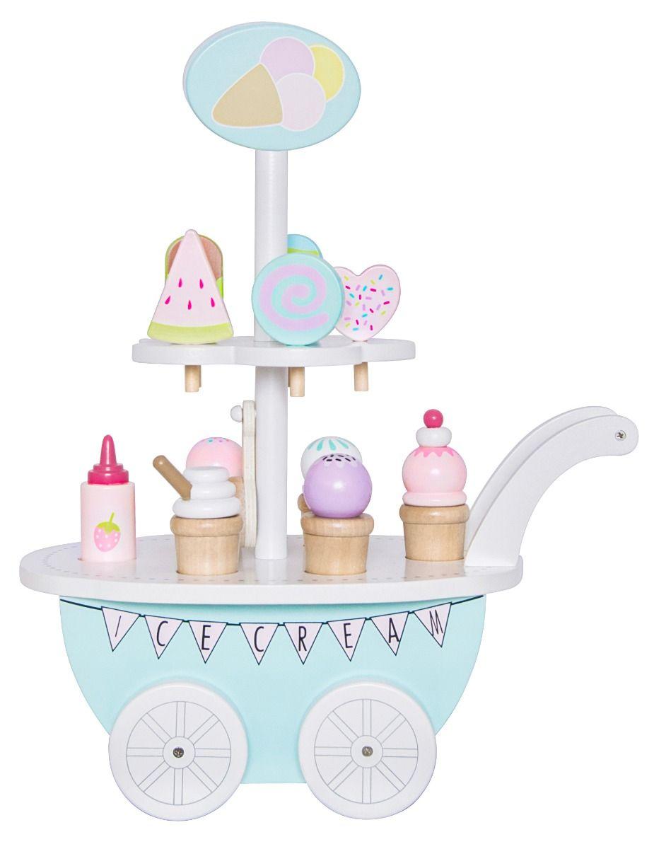 Τρόλλεϋ παγωτού - I scream, you scream, we all scream for ice cream! Υπέροχο καροτσάκι παγωτού σε παστέλ χρώματα, με δίσκους και παγωτάκια που μοσχομυρίζουν για εσας και τους φίλους σας! Το σετ έχει τέλειο μέγεθος για τα μικρά χέρια και ενθαρρύνει τη δημιουργικότητα, τη φαντασία και το παιχνίδι ρόλων. Περιλαμβάνει 1 ξύλινο καροτσάκι παγωτού με ρόδες, 1 κουτάλα παγωτού, 1 σιρόπι φράουλας, 5 παγωτά σε κυπελλάκι με αποσπώμενα κομμάτια και 5 παγωτά σε ξυλάκια με διαφορετικές γεύσεις.