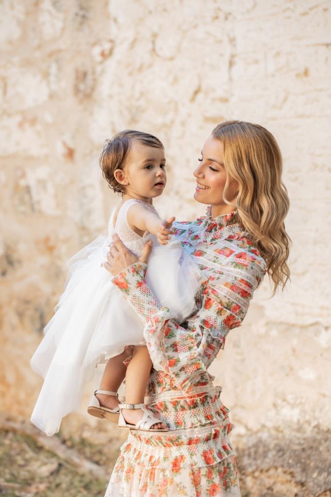 Ήταν η μέρα της, ήθελα να είναι όλα όμορφα για το παιδάκι μας. Αν και ήμουν πολύ αγχωμένη, γιατί δεν ήθελα να ταλαιπωρηθεί, πήγαν όλα καλά και δεν έκλαψε καθόλου. Οι νονοί της είναι άνθρωποι που έζησαν μαζί μας την αγωνία της εγκυμοσύνης, αλλά και τις χαρές και τα άγχη τους πρώτους μήνες της ζωής της. Έτσι τους επιλέξαμε. Με την ευχή να είναι πάντα δίπλα της και να της σταθούν σαν δεύτεροι γονείς.