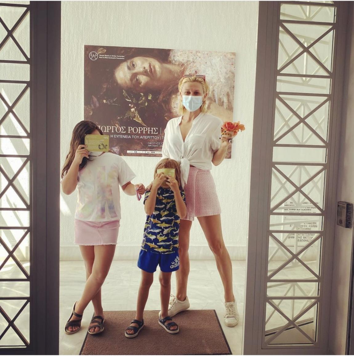 Το ίδιο κυκλαδίτικο νησί επέλεξε η Κατερίνα Καραβάτου για τις οικογενειακές διακοπές με τα δύο παιδιά της. Η παρουσιάστρια μοιράζεται αρκετές στιγμές από την παραμονή της εκεί, με αγαπημένη μας εκείνη που ποζάρει στο Μουσείο Τέχνης με την Αέλια και τον Αρίωνα.