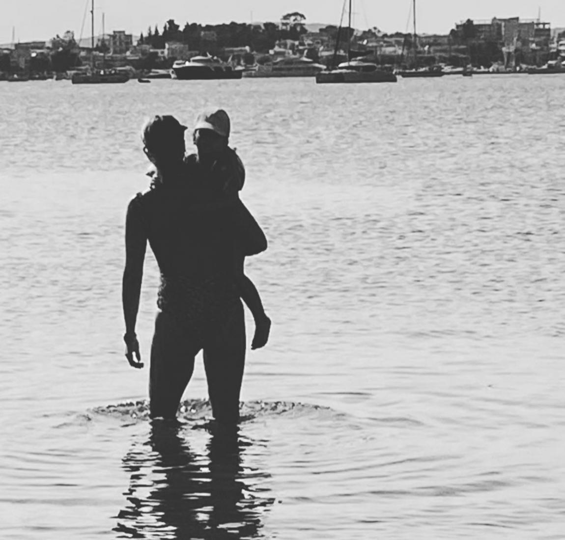 Η δημοφιλής παρουσιάστρια δημοσίευσε ένα καλλιτεχνικό ασπρόμαυρο στιγμιότυπο με την ίδια να κρατά στην αγκαλιά της την κόρη της λίγο πριν κάνουν την απογευματινή βουτιά τους στο Πόρτο Χέλι. Στη λεζάντα της φωτογραφίας μάλιστα, μοιράστηκε ένα ποίημα που είχε γράψει η ίδια όταν πήγαινε ακόμη Δημοτικό...
