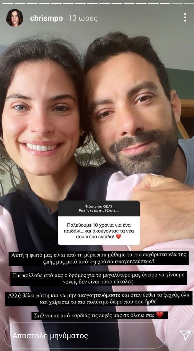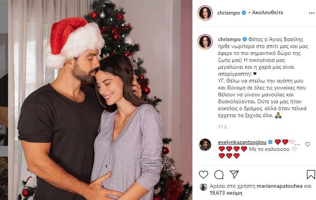Τον περασμένο Δεκέμβριο η Χριστίνα Μπόμπα δημοσίευσε μια τρυφερή φωτογραφία, στην οποία η ίδια και ο σύζυγός της είχαν τα χέρια στην κοιλίτσα της: "Φέτος ο Άγιος Βασίλης ήρθε νωρίτερα στο σπίτι μας και μας έφερε το πιο σημαντικό δώρο της ζωής μας! Η οικογένεια μας μεγαλώνει και η χαρά μας είναι απερίγραπτη! ΥΓ. Θέλω να στείλω την αγάπη μου και δύναμη σε όλες τις γυναίκες που θέλουν να γίνουν μανούλες και δυσκολεύονται. Ούτε για μας ήταν εύκολος ο δρόμος, αλλά όταν τελικά έρχεται τα ξεχνάς όλα.", έγραψε στη λεζάντα.