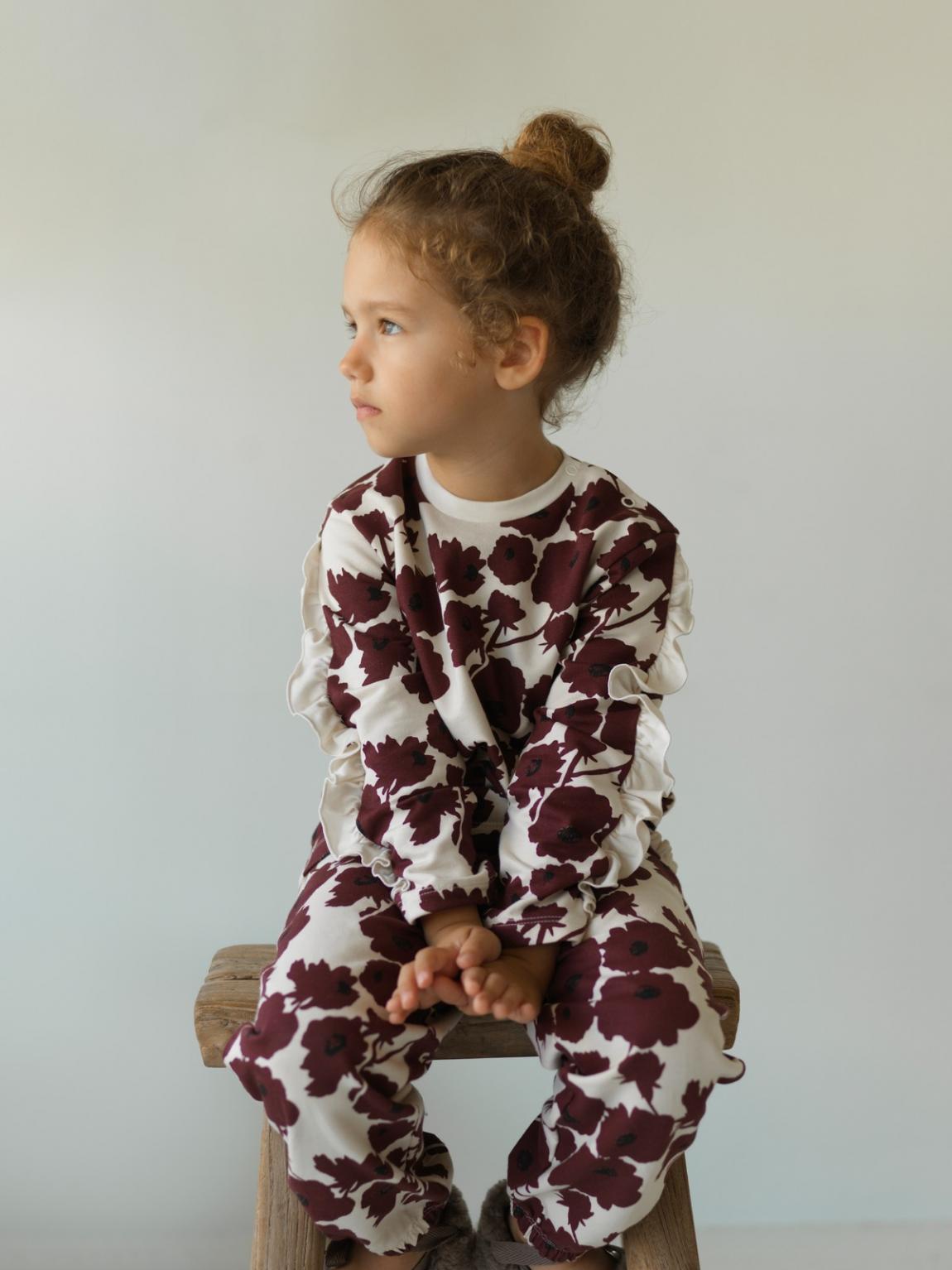Μπλούζα φούτερ & παντελόνι φούτερ Burgundy flowers allover