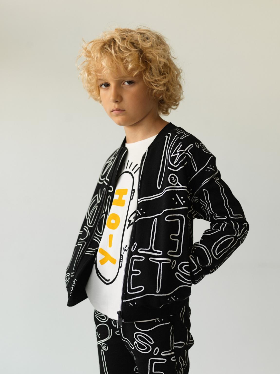 Ζακέτα φούτερ μαύρη Let's roll allover, T-shirt winter white με τύπωμα & Παντελόνι φούτερ μαύρο Let's roll allover