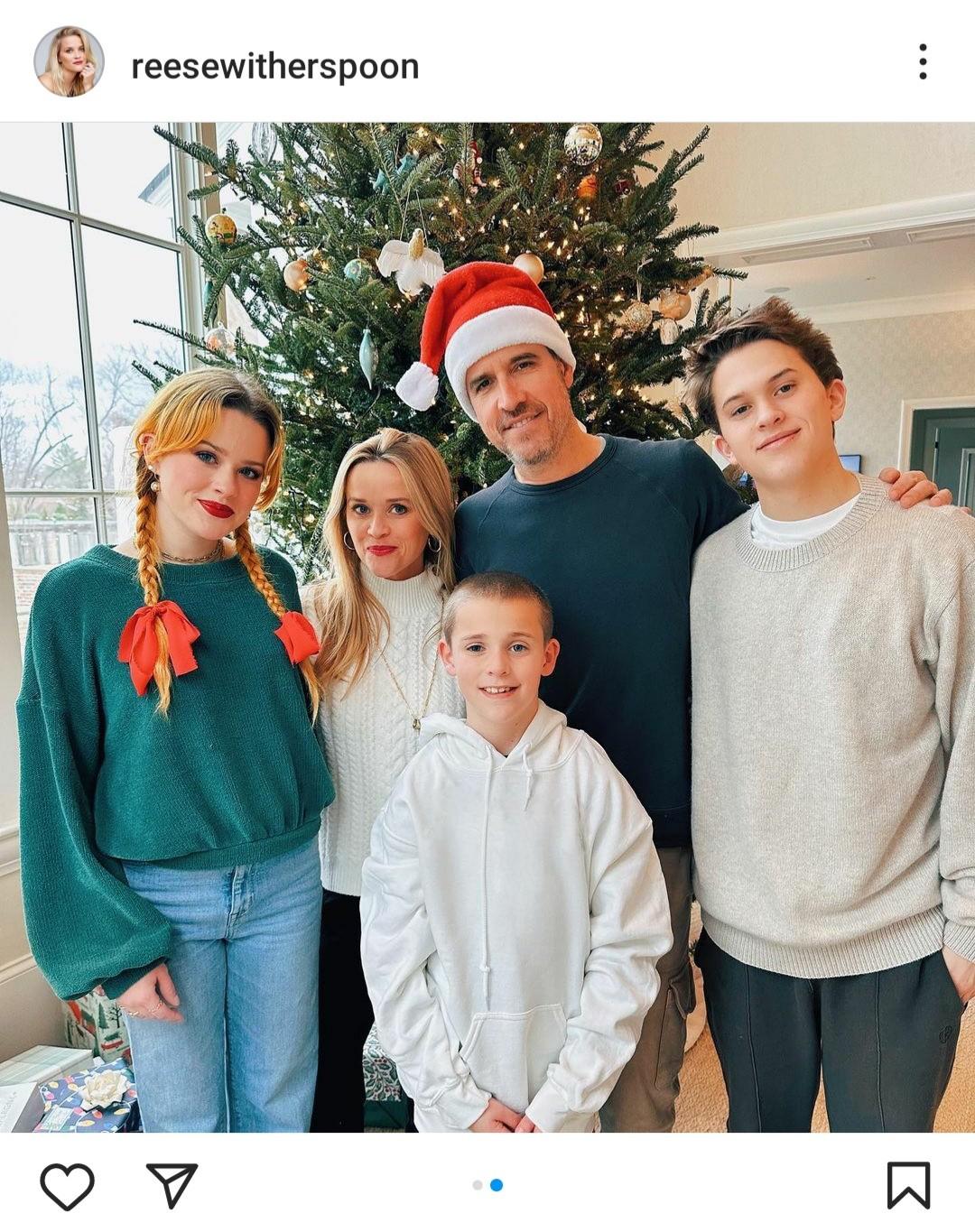 Η πιο αξιολάτρευτη οικογενειακή φωτογραφία μπροστά από το χριστουγεννιάτικο δέντρο ανήκει χωρίς αμφιβολία στη Reese Witherspoon.