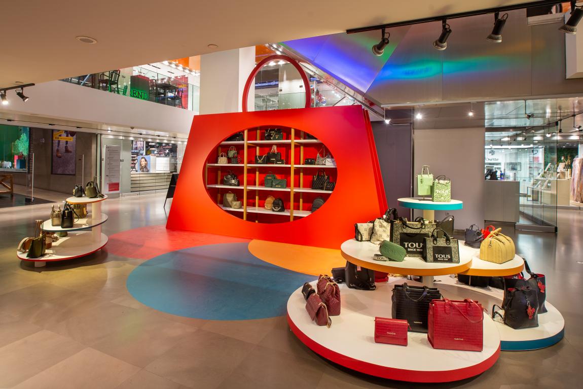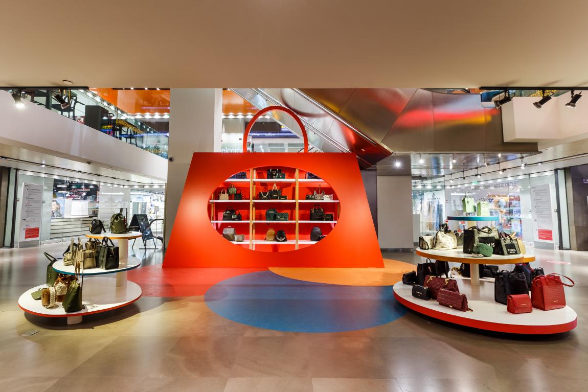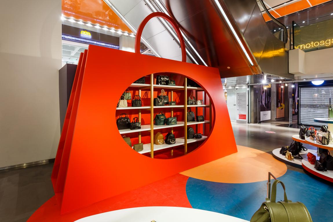 Το installation πέρα από ωδή στο ίσως πιο αγαπημένο γυναικείο αξεσουάρ, την τσάντα, αξιοποιείται και ως σημείο προβολής και πώλησης, καθώς το εσωτερικό του είναι ειδικά διαμορφωμένο με ράφια στα οποία παρουσιάζονται τσάντες από τα brands που θα βρείτε στα πολυκαταστήματα notos.