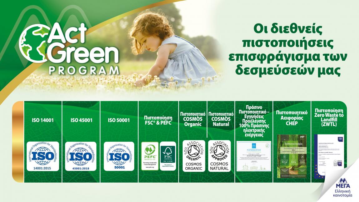 - Πράσινο Πιστοποιητικό – Εγγυήσεις Προέλευσης 100% Πράσινης ηλεκτρικής ενέργειας. Η ΜΕΓΑ έχει λάβει το Πράσινο Πιστοποιητικό που διασφαλίζει ότι το σύνολο της ηλεκτρικής ενέργειας που προμηθεύεται προέρχεται σε ποσοστό 100% από Σταθμούς Παραγωγής Πράσινης Ηλεκτρικής Ενέργειας.