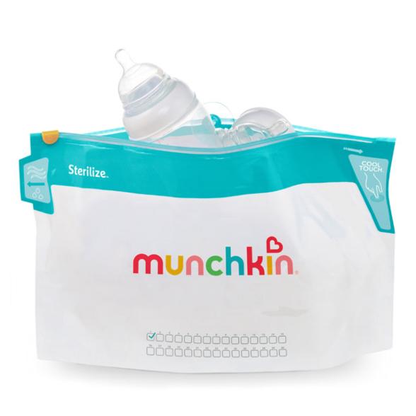 Αν το μικρό μας απολαμβάνει να εκτοξεύει τις πιπίλες του, ιδιαίτερα καθ’ οδόν, αυτό το αξεσουάρ θα μας λύσει τα χέρια: ένα σετ από έξι σακούλες, που σκοτώνουν το 99,9% των βακτηρίων από θηλές, πιπίλες, μπουκάλια, παιχνίδια οδοντοφυΐας, μικρά παιχνίδια και εξαρτήματα θηλάστρου. Απλά τις γεμίζουμε με νερό και με τα αντικείμενα που θέλουμε να αποστειρώσουμε και τις τοποθετούμε στον φούρνο μικροκυμάτων. Κάθε σακούλα μπορεί να χρησιμοποιηθεί έως 30 φορές, έχει εύχρηστη λαβή Cool-Touch™, για αποφυγή εγκαυμάτων, και κουμπωτό άνοιγμα για διαφυγή του ατμού.