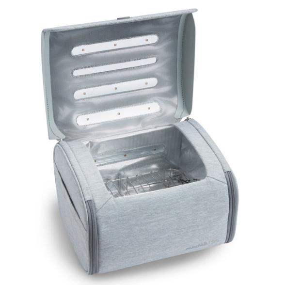 Ένας μίνι φορητός αποστειρωτής, για θηλές, πιπίλες και άλλα αξεσουάρ, που μέσα σε λιγότερο από ένα λεπτό εξουδετερώνει με ασφάλεια το 99% των βακτηριδίων και των ιών. Ελεγμένος από ανεξάρτητα εργαστήρια, λειτουργεί μόνο με τη χρήση φωτός UV, χωρίς χημικά, θερμότητα ή νερό.