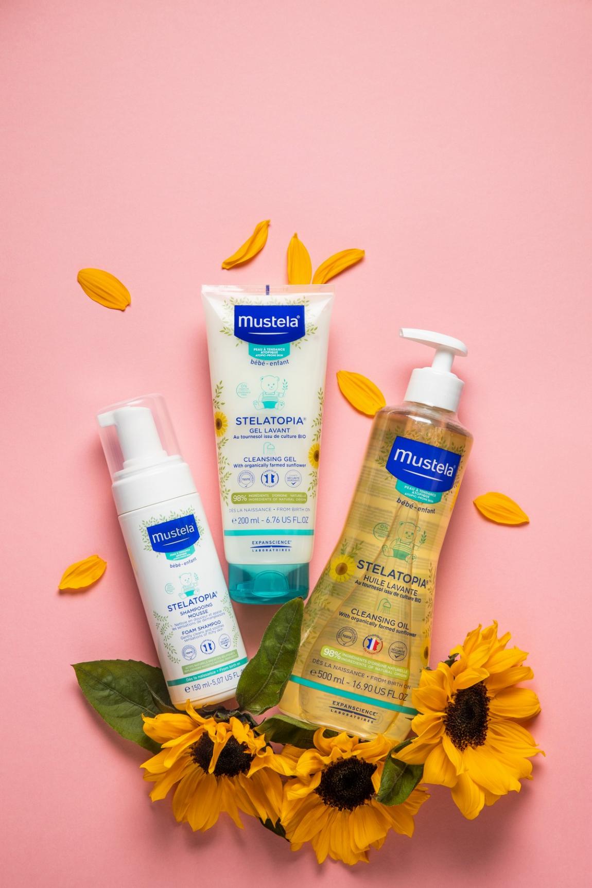 Stelatopia®Cleansing Gel Mustela®: Καθαρίζει απαλά το σώμα και τα μαλλιά, επανορθώνει το ατοπικό δέρμα και ανακουφίζει άμεσα από το ενοχλητικό αίσθημα κνησμού και τραβήγματος.