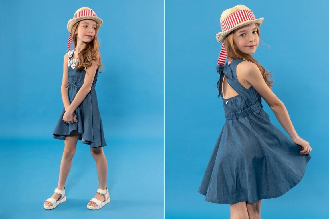 Τζιν φόρεμα με κέντημα μπροστά και άνοιγμα στην πλάτη