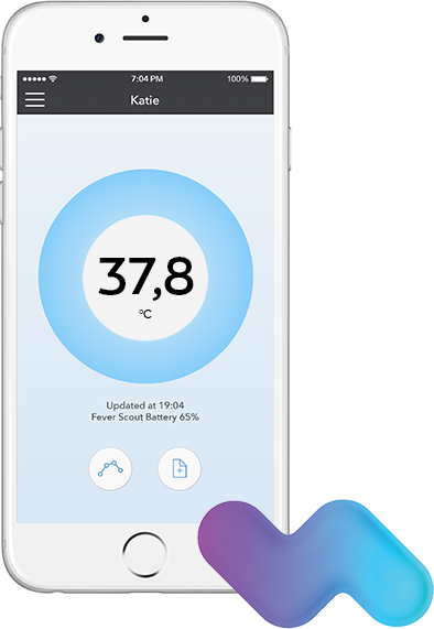 Παρακολουθήστε την εξέλιξη του πυρετού σε αληθινό χρόνο! Ο ευαίσθητος αισθητήρας εφαρμόζεται με το ειδικό αυτοκόλλητο στο δέρμα του μωρού ή του παιδιού, ανιχνεύει με κλινική ακρίβεια τη θερμοκρασία του παιδιού σας και στέλνει άμεσα την πληροφορία στο smartphone, για να ενημερώνεστε σε πραγματικό χρόνο.