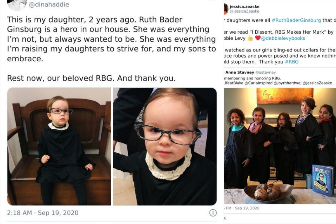 Από την περασμένη Παρασκευή που ανακοινώθηκε η είδηση του θανάτου της, είναι αμέτρητα τα αφιερώματα και χιλιάδες οι αναρτήσεις για τη Ρουθ Μπέιντερ Γκίνσμπεργκ ή αλλιώς “notorious RBG”, όπως αποκαλούσαν τη δεύτερη γυναίκα δικαστή στην ιστορία του Ανώτατου Δικαστηρίου, όπου υπηρέτησε για 27 χρόνια. Το εντυπωσιακό είναι, πως αποτελεί πρότυπο ακόμα και για τα μικρά κορίτσια στην Αμερική, πολλά από τα οποία ντύθηκαν RBG τιμώντας με αυτόν τον τρόπο το role model τους.