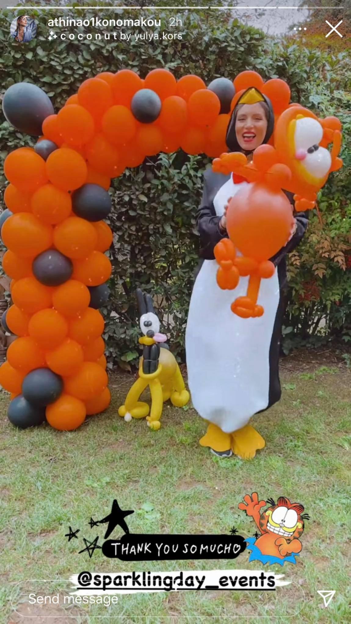 Καθώς η μέρα συνέπεσε με την τελευταία Κυριακή της Αποκριάς, η όμορφη μαμά που διανύει το τρίτο τρίμηνο της δεύτερης εγκυμοσύνης της, ντύθηκε πιγκουίνος και πόζαρε δίπλα σε μια σύνθεση από μπαλόνια με κυρίαρχο το πορτοκαλί χρώμα!