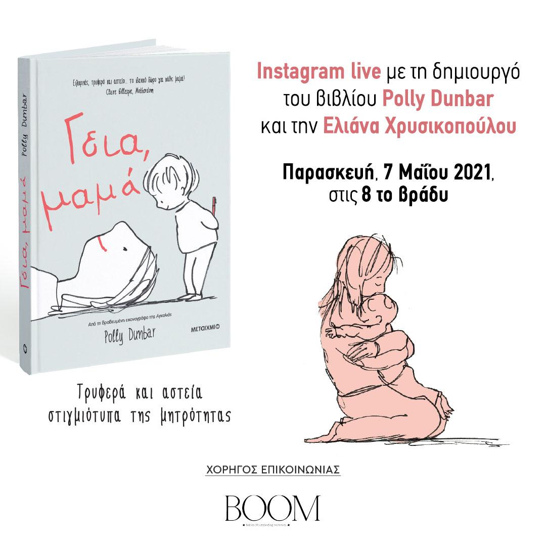 Με αφορμή τη Γιορτή της Μητέρας, οι εκδόσεις ΜΕΤΑΙΧΜΙΟ σας προσκαλούν στη διαδικτυακή εκδήλωση-παρουσίαση του βιβλίου της Polly Dunbar "ΓΕΙΑ, ΜΑΜΑ", σήμερα, Παρασκευή 7 Μαΐου 2021, στις 8 το βράδυ.