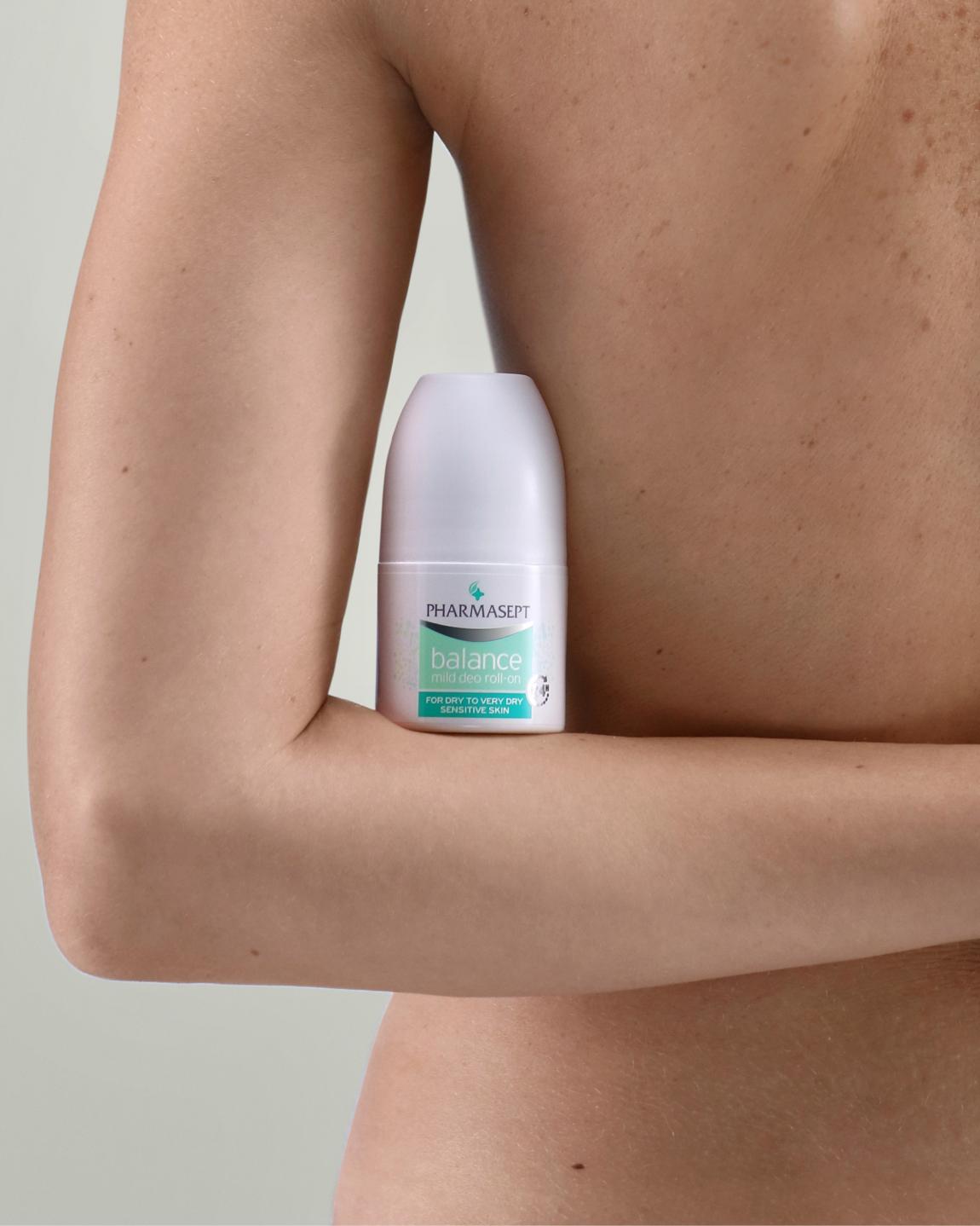 Balance Mild Deo Roll-On, φυσικό αποσμητικό χωρίς αλουμίνιο, σιλικόνες, οινόπνευμα και ταλκ, δεν φράσσει τους πόρους, αποτελεί ιδανικό προϊόν για άτομα με τάση για κύστες και ερεθισμούς ενώ προλαμβάνει τυχόν φλεγμονές.