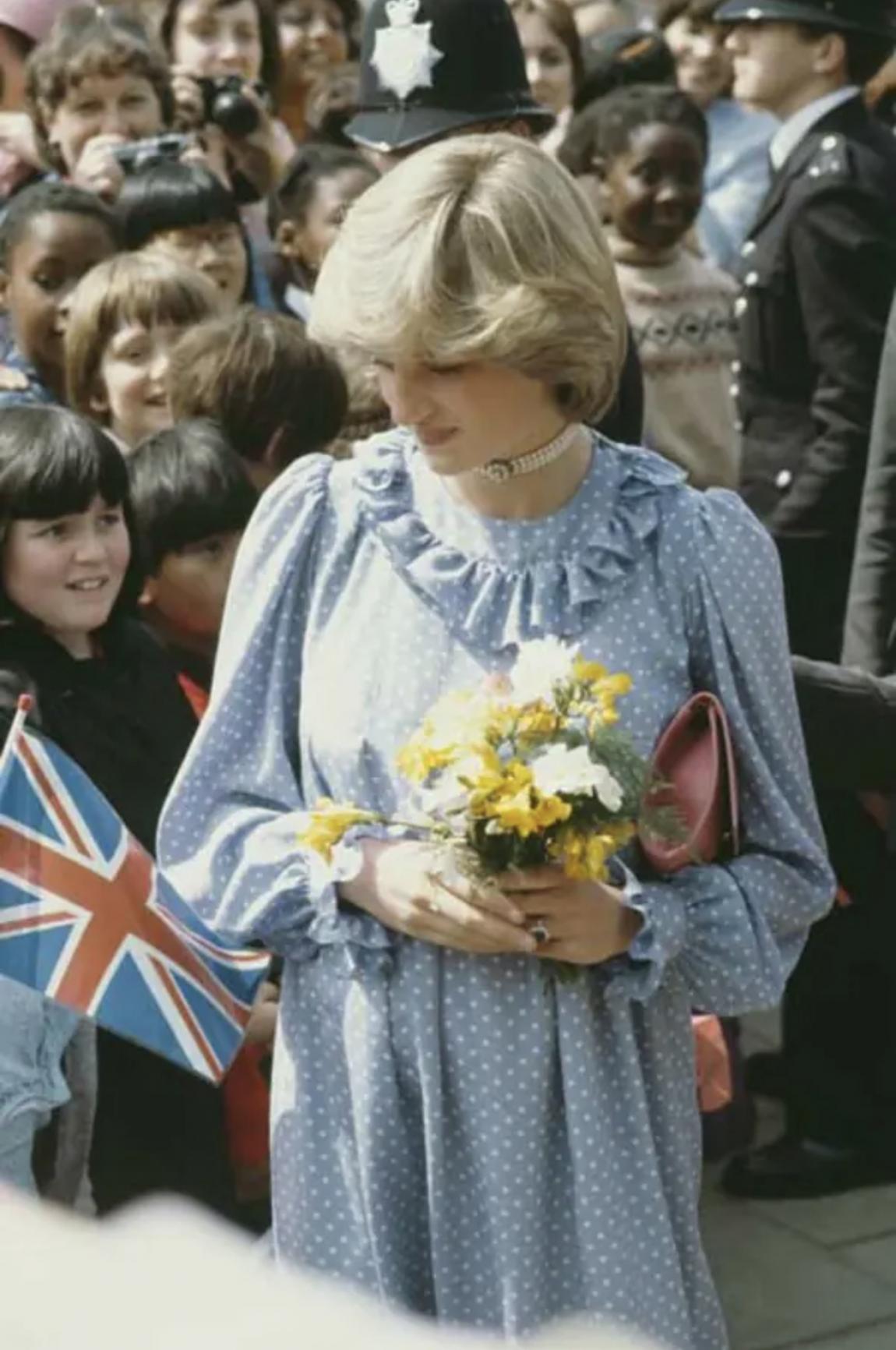 Η πιο αγαπημένη πριγκίπισσα όλων των εποχών έμοιαζε πραγματικά να ακτινοβολεί στην πρώτη της εγκυμοσύνη. Ευγενική, προσφιλής και πρόσχαρη, όπως πάντα, σε αυτό το στιγμιότυπο χαιρετά τους θαυμαστές της κρατώντας ένα μπουκέτο αγριολούλουδα. Αν είσαι έγκυος το 2021, μη διστάσεις να εμπνευστείς από την εμφάνιση της πριγκίπισσας Νταϊάνα το 1982, αφού τόσο το γαλάζιο πουά, όσο και οι ιδιαίτεροι γιακάδες είναι στις ραγδαία ανερχόμενες τάσεις της μόδας!