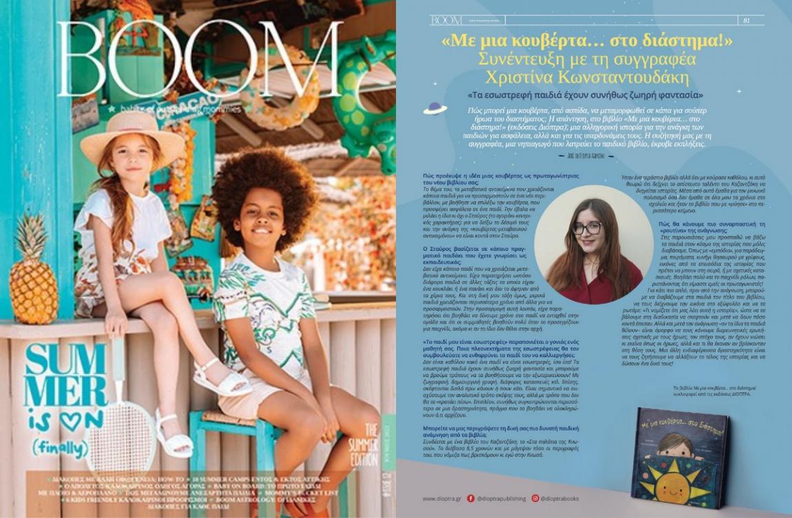 Πώς μπορεί μια κουβέρτα, από ασπίδα, να μεταμορφωθεί σε κάπα για σούπερ ήρωα του διαστήματος; Η απάντηση, στο βιβλίο «Με μια κουβέρτα… στο διάστημα!» (εκδόσεις Διόπτρα), μια αλληγορική ιστορία για την ανάγκη των παιδιών για ασφάλεια, αλλά και για τις υπερδυνάμεις τους. Η συζήτησή μας με τη συγγραφέα, μια νηπιαγωγό που λατρεύει το παιδικό βιβλίο, έκρυβε εκπλήξεις.