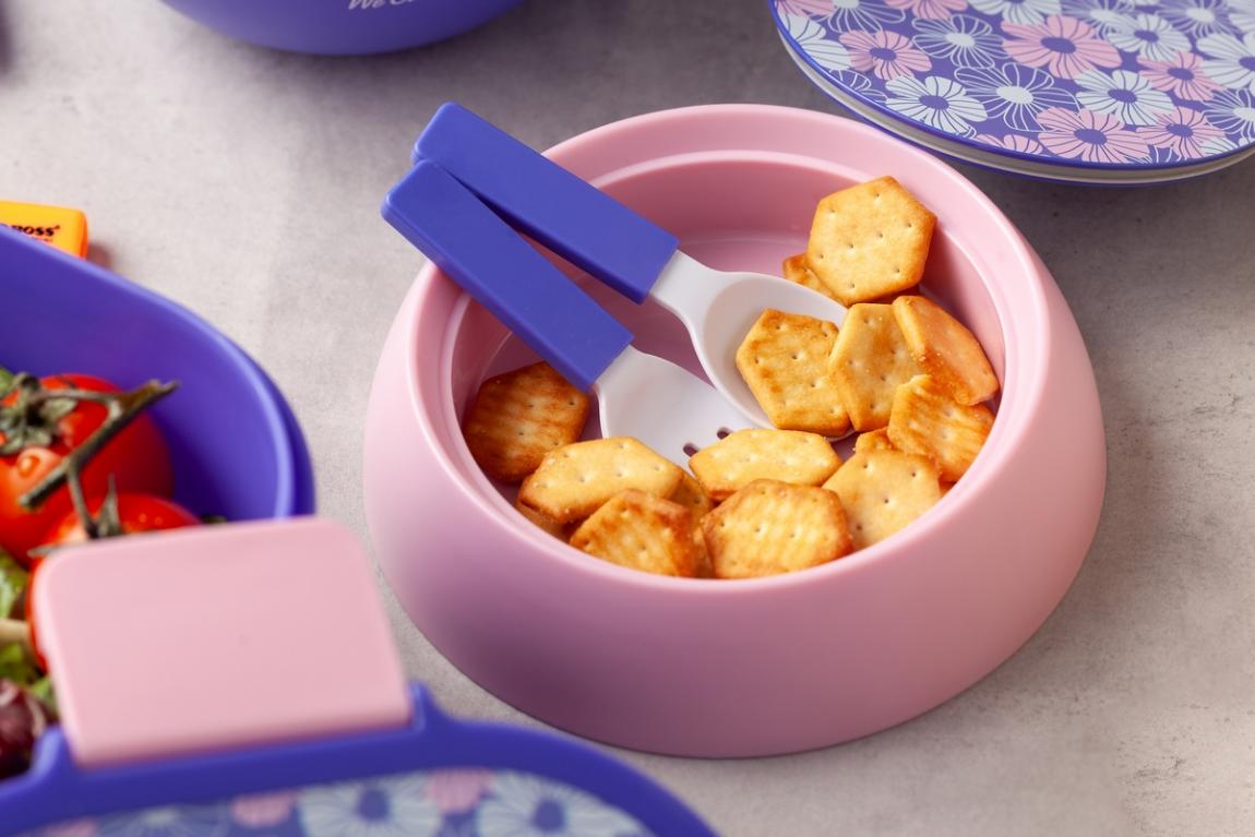 Δεν είναι ένα απλό δοχείο αποθήκευσης τροφίμων, είναι ένα καλαίσθητο σετ φαγητού που αποτελείται από κουταλοπίρουνα και βιδωτό καπάκι που μπορεί να χρησιμοποιηθεί ως δεύτερος αποθηκευτικός χώρος ή ως πιάτο. Διαθέτει επιπλέον δικό του καπάκι με δαχτυλίδι σιλικόνης που κλείνει αεροστεγώς, και τάπα για αερισμό και αποσυμφόρηση από τους υδρατμούς για τα ζεστά φαγητά.
