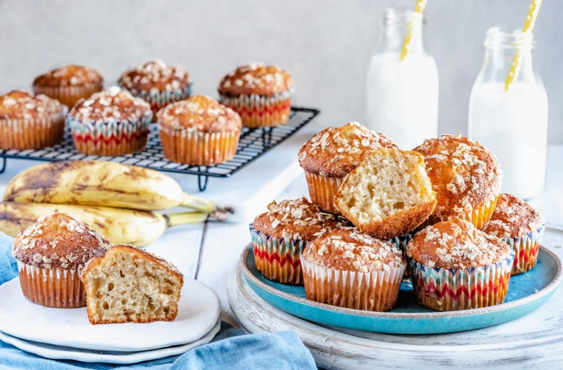 Muffins με νιφάδες βρώμης και μπανάνα | Συνολικός χρόνος: 30 λεπτά, μερίδες 18