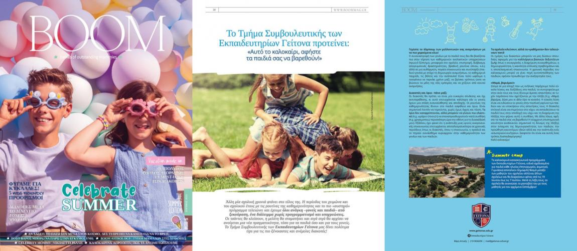BOOM note: Summer camp! Τα καλοκαιρινά κατασκηνωτικά προγράμματα των Εκπαιδευτηρίων Γείτονα, ειδικά σχεδιασμένα για παιδιά κάθε ηλικίας (Νηπιαγωγείο, Δημοτικό, Γυμνάσιο) αποτελούν δημοφιλή θεσμό μεταξύ των μαθητών του σχολείου αλλά και άλλων σχολείων και θα διαρκέσουν φέτος από τις 19 Ιουνίου έως τις 7 Ιουλίου. Μετά τη λήξη τους, το σχολείο θα ανανεώσει το ραντεβού του με τους μαθητές για τον ερχόμενο Σεπτέμβριο!