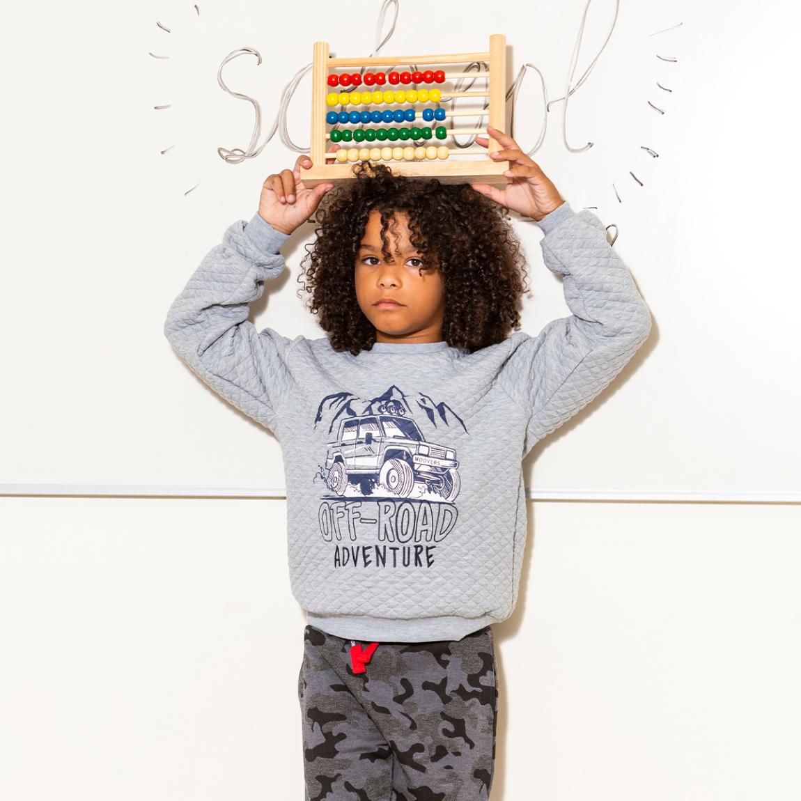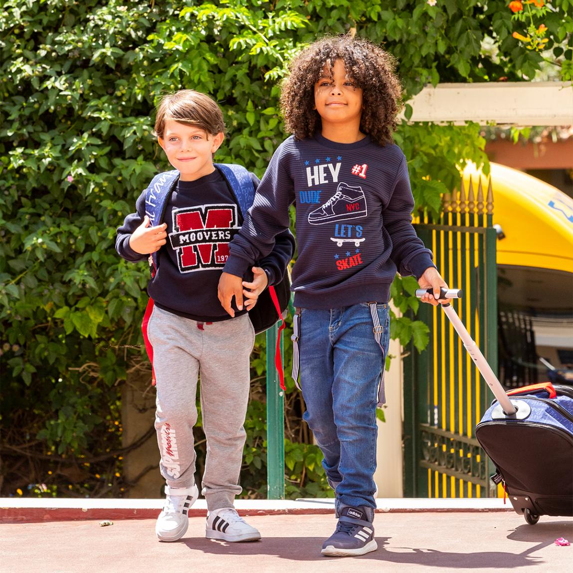 Οι μικροί κύριοι από την άλλη θα βρουν αμέτρητες επιλογές σε φόρμες, μπλούζες, φούτερ, πλεκτά πουλόβερ, ζακέτες και παντελόνια σε αμέτρητα σχέδια και χρώματα, με πρωτότυπα κοψίματα, τυπωμένες φακαρόλες, έντονα τυπώματα, χρωματιστά κουμπιά και φερμουάρ, καθώς και ανάγλυφα δερμάτινα διακριτικά, τυπωμένα λάστιχα. Όλα τόσο μοναδικά και ιδιαίτερα, που κάθε παιδί θα βρει το στιλ του.