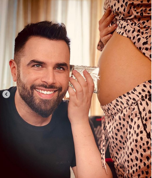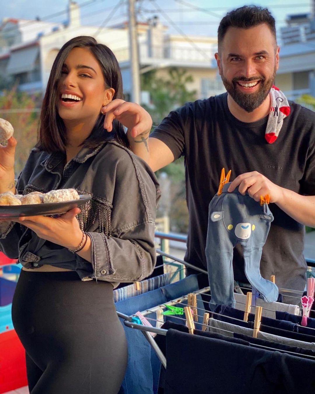 Λίγους μήνες πριν, ο Κύπριος τραγουδιστής δημοσίευσε ένα καρουζέλ με δύο υπέροχες φωτογραφίες για να ανακοινώσει τον ερχομό του δεύτερου παιδιού του με τη Γαλάτεια Βασιλειάδη! Στην πρώτη φωτογραφία ο ίδιος απλώνει μπουγάδα με μωρουδιακά ρούχα, ενώ η σύζυγός του στέκεται δίπλα του κρατώντας ένα πιάτο με donuts. Αν και η φουσκωμένη κοιλίτσα της είναι ευδιάκριτη στην πρώτη φωτογραφία, στη δεύτερη έρχεται σε πρώτο πλάνο με τον τραγουδιστή να προσπαθεί να ακούσει το μωρό με ένα ποτήρι.