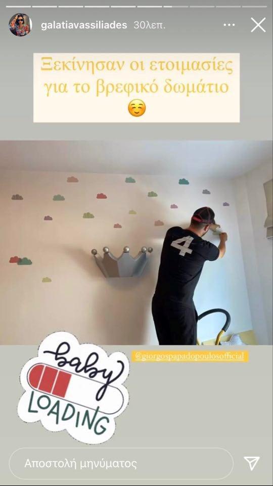 Όταν η Γαλάτεια Βασιλειάδη βρισκόταν στον έβδομο μήνα της εγκυμοσύνης της, το ζευγάρι άρχισε τις προετοιμασίες για το νέο μέλος της οικογένειάς τους. Η ίδια μάλιστα απαθανάτισε τον αγαπημένο της κατά τη διάρκεια που διακοσμούσε το παιδικό δωμάτιο.