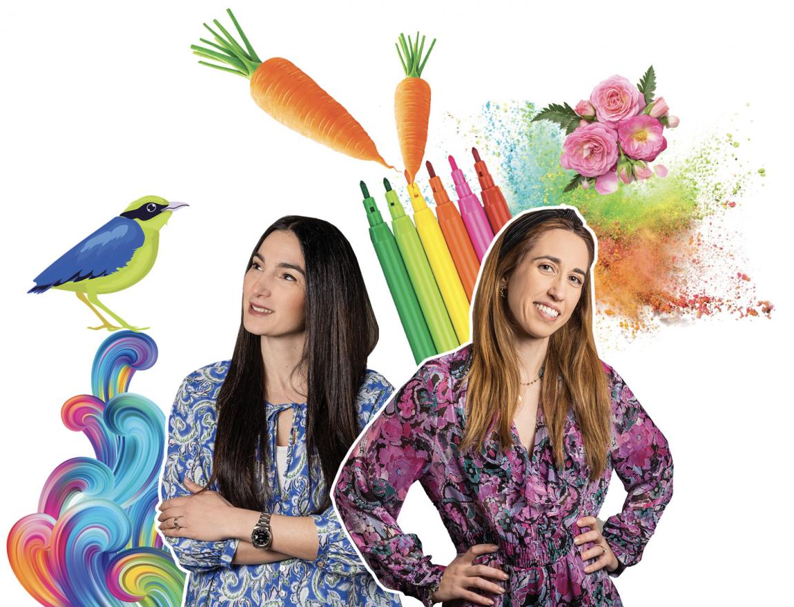 Διαλέγουμε από το καλάθι με τα λαχανικά που έχουμε στην κουζίνα ένα μεγάλο καρότο και το κρατάμε παριστάνοντας πως είναι μαρκαδόρος. Φανταζόμαστε την άκρη του ως μύτη μολυβιού, τη βουτάμε σε δαχτυλομπογιές ή τέμπερα και δημιουργούμε χρωματιστά λουλούδια και άλλα σχέδια.
